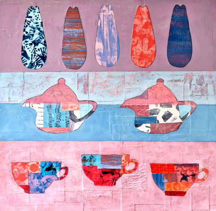 Alongside them are works made from flattened boxes—yes, really. They started as something overlooked and became something layered and surprising through a process of building, undoing, and rebuilding. It’s a playful take on transformation, asking what else something can become when you let go of how it’s “supposed” to be.